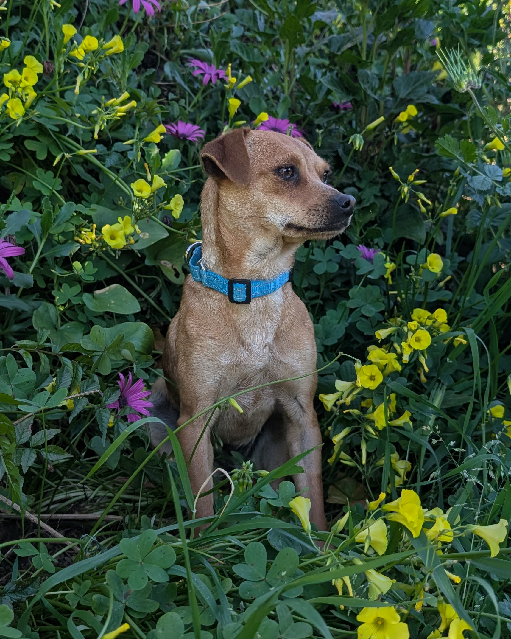 Auf dem Tierschutzhof zeigt sich Filly als junge, zarte und lebensfrohe Hündin, die noch ganz am Anfang steht. Sie bringt Neugier und Offenheit mit, braucht aber wie die anderen noch Anleitung, um sich im Alltag sicher zurechtzufinden.