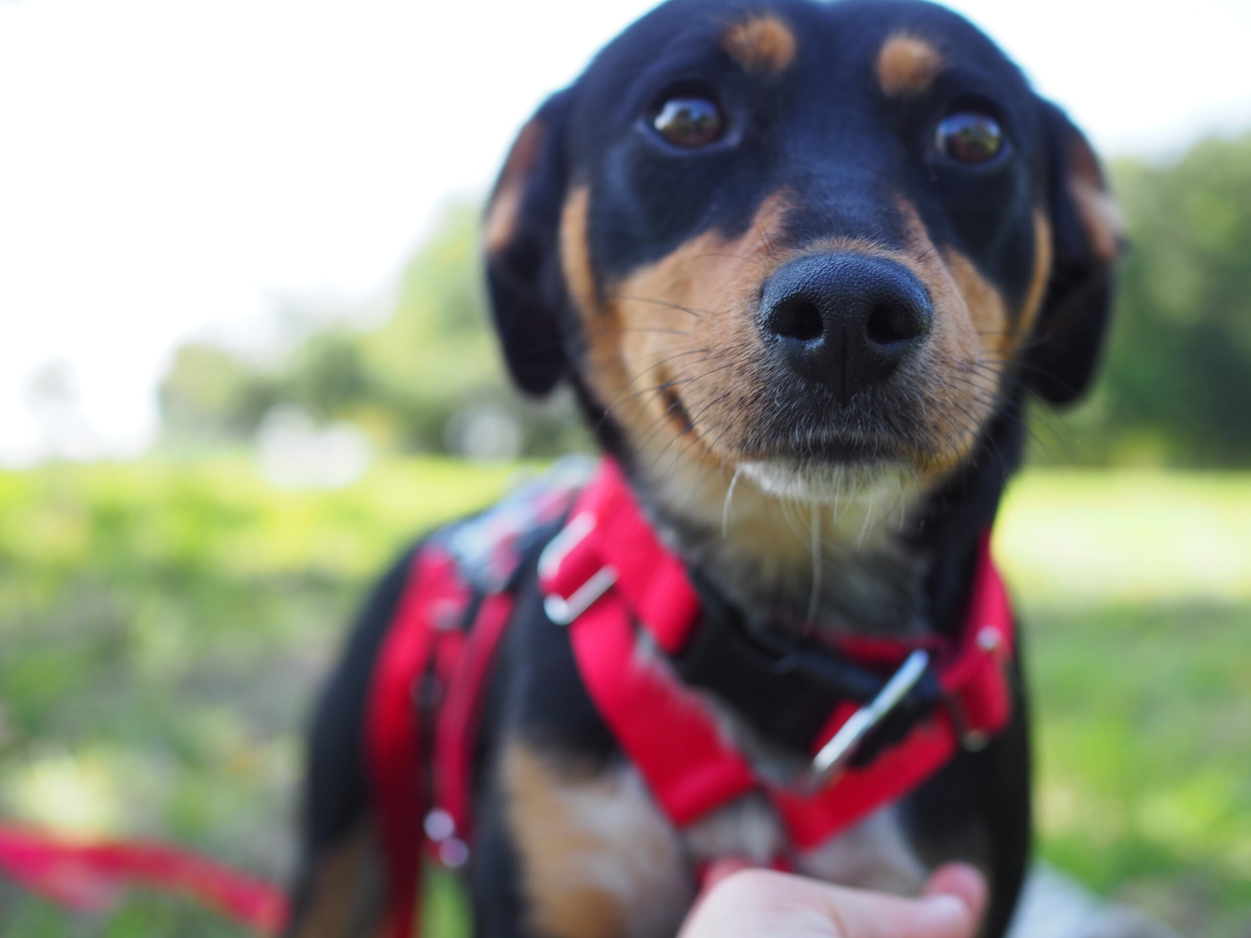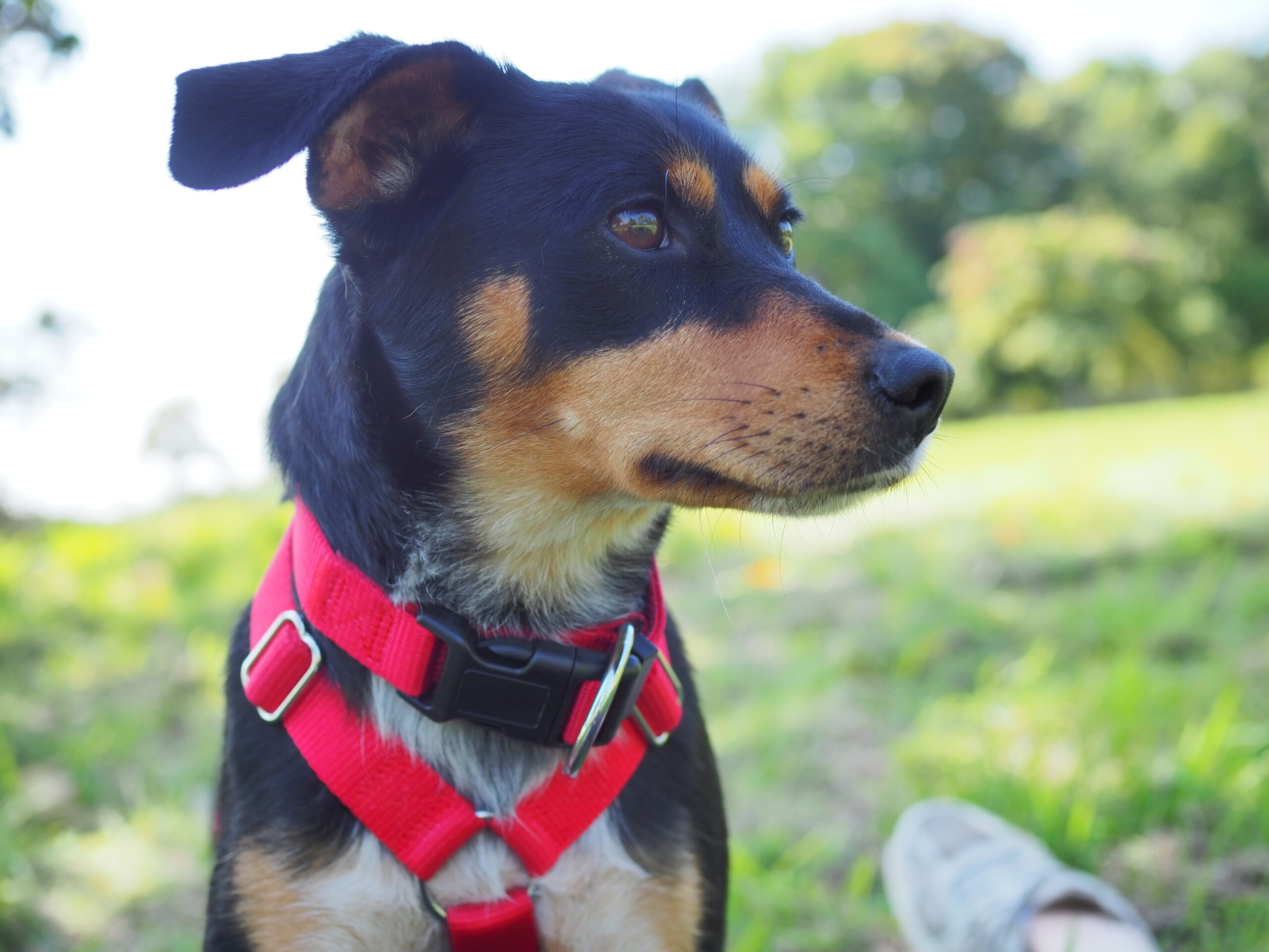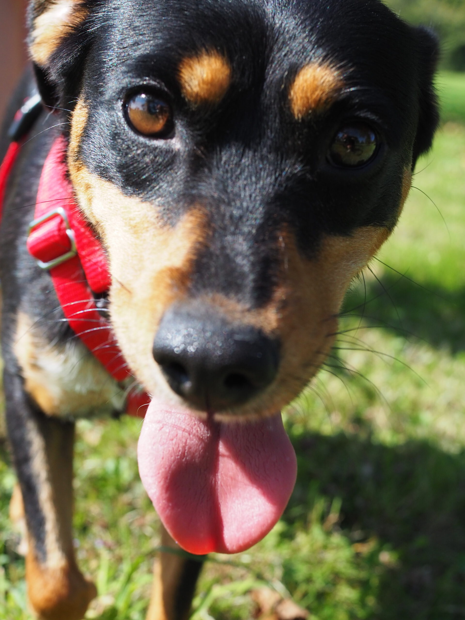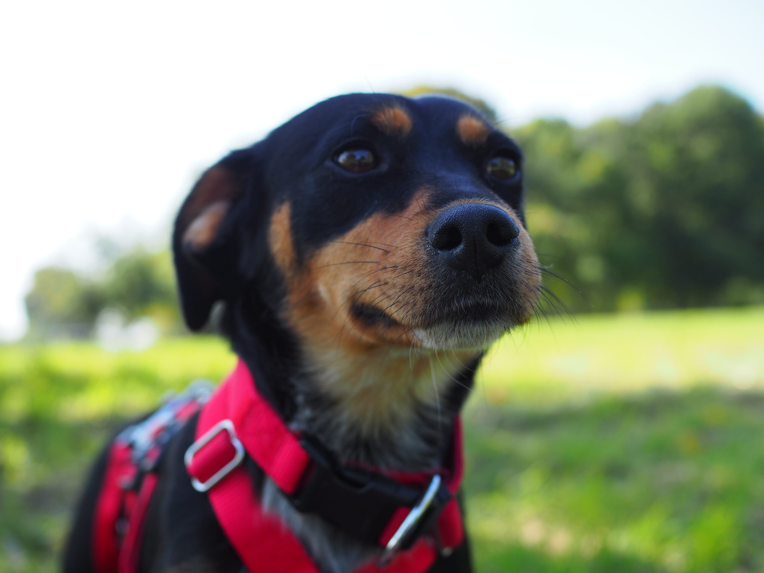 Auch draußen entwickelt sie sich toll: Hundebegegnungen nimmt sie gelassen hin, schaut kurz und geht dann einfach weiter. Im Park löst sie sich inzwischen zuverlässig, im Wald ist es ihr noch etwas zu aufregend. Bei lauten Geräuschen oder unruhigen Situationen sucht sie Schutz bei ihren Bezugspersonen – hier ist souveräne Begleitung wichtig, damit sie Schritt für Schritt sicherer wird. Einen stark ausgeprägten Jagdtrieb konnten wir bisher nicht beobachten, Eichhörnchen sind aber interessant.