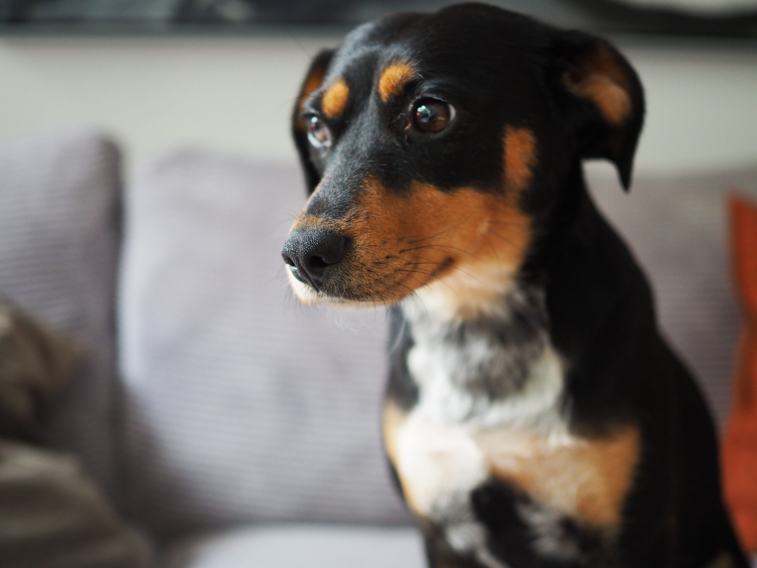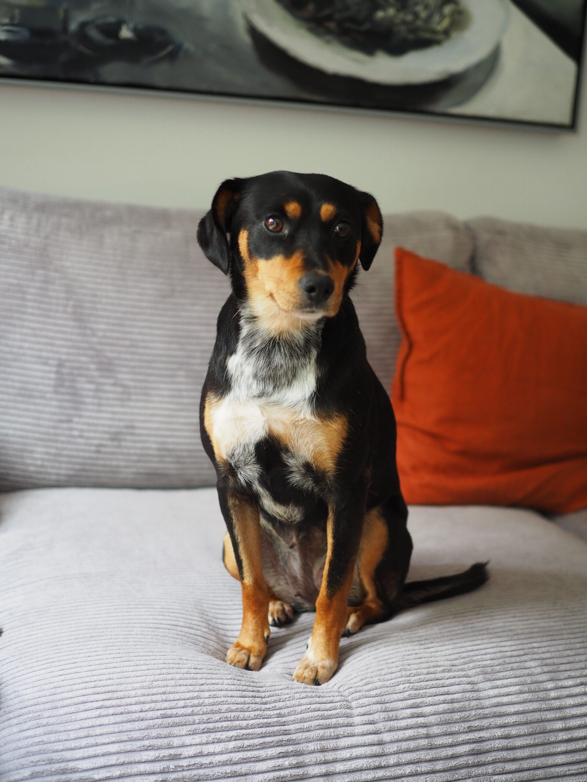 Im Haus hat sie sich sofort eingelebt: sie ist vom ersten Tag an stubenrein, schläft nachts brav durch und orientiert sich stark an ihren Menschen. Mit etwas Anleitung legt sie sich entspannt ins Körbchen oder auf die Couch und findet schnell zur Ruhe. Haushaltsgeräusche wie Kochen oder Staubsaugen sind für sie längst kein Problem mehr, und Geschirr oder Leine zieht sie völlig unbeeindruckt an. Männern begegnet sie ebenso ohne Angst. Fremden gegenüber ist sie zunächst kurz vorsichtig, taut aber schnell auf und fordert nach kurzer Zeit schon Streicheleinheiten ein.