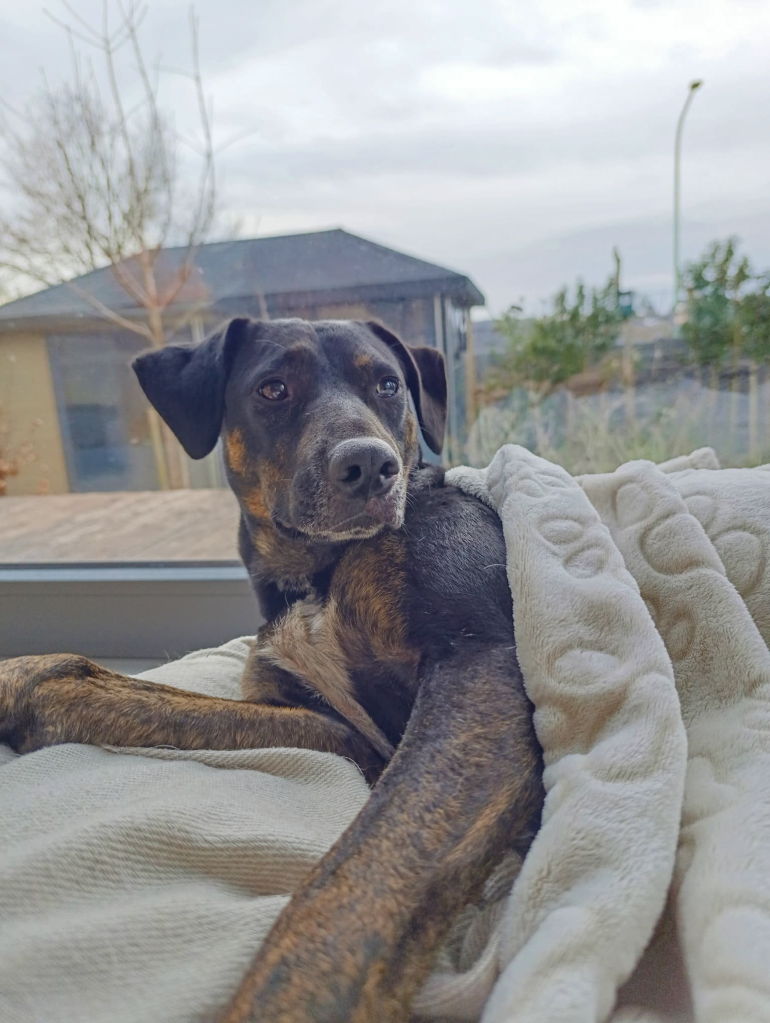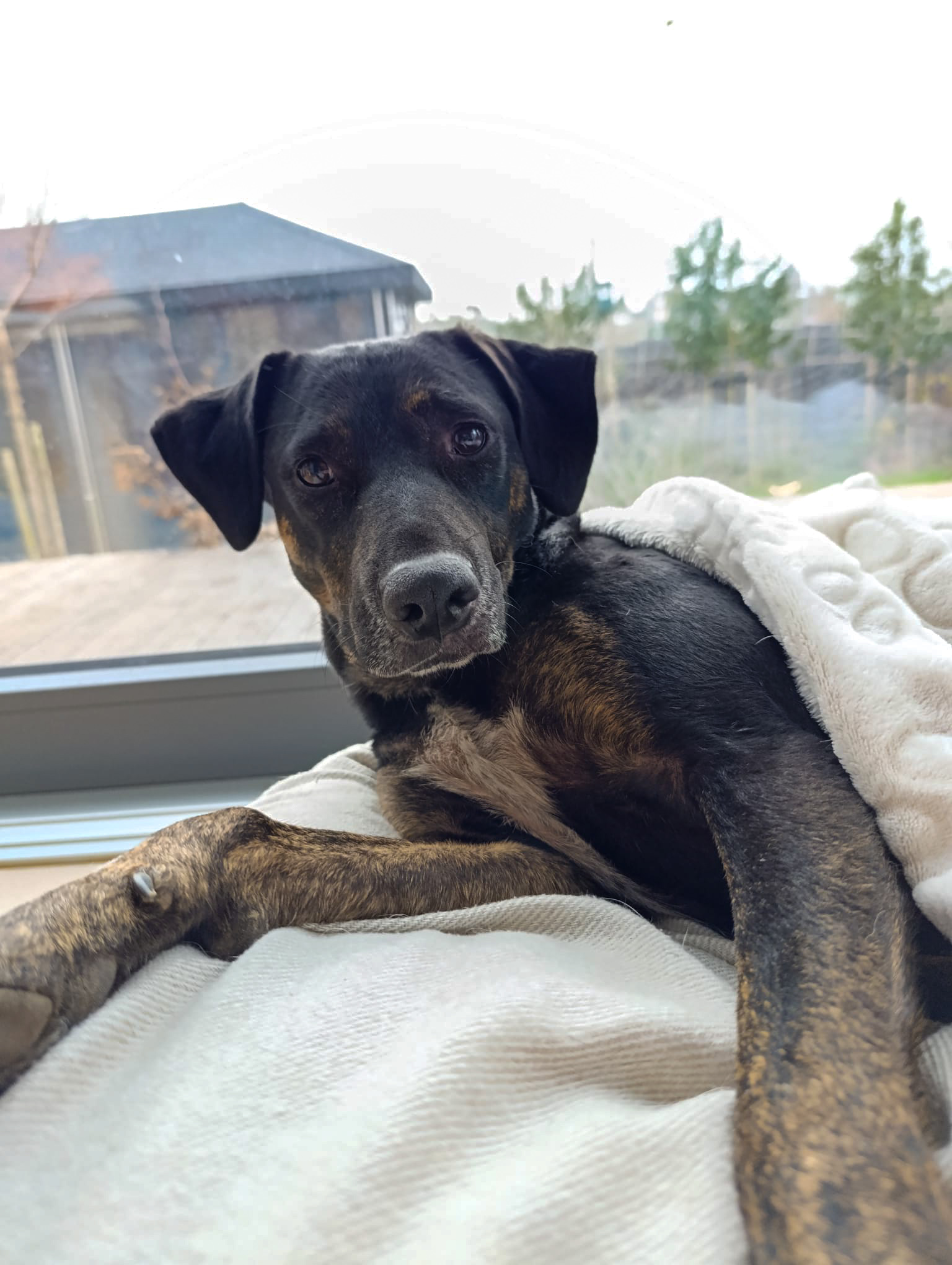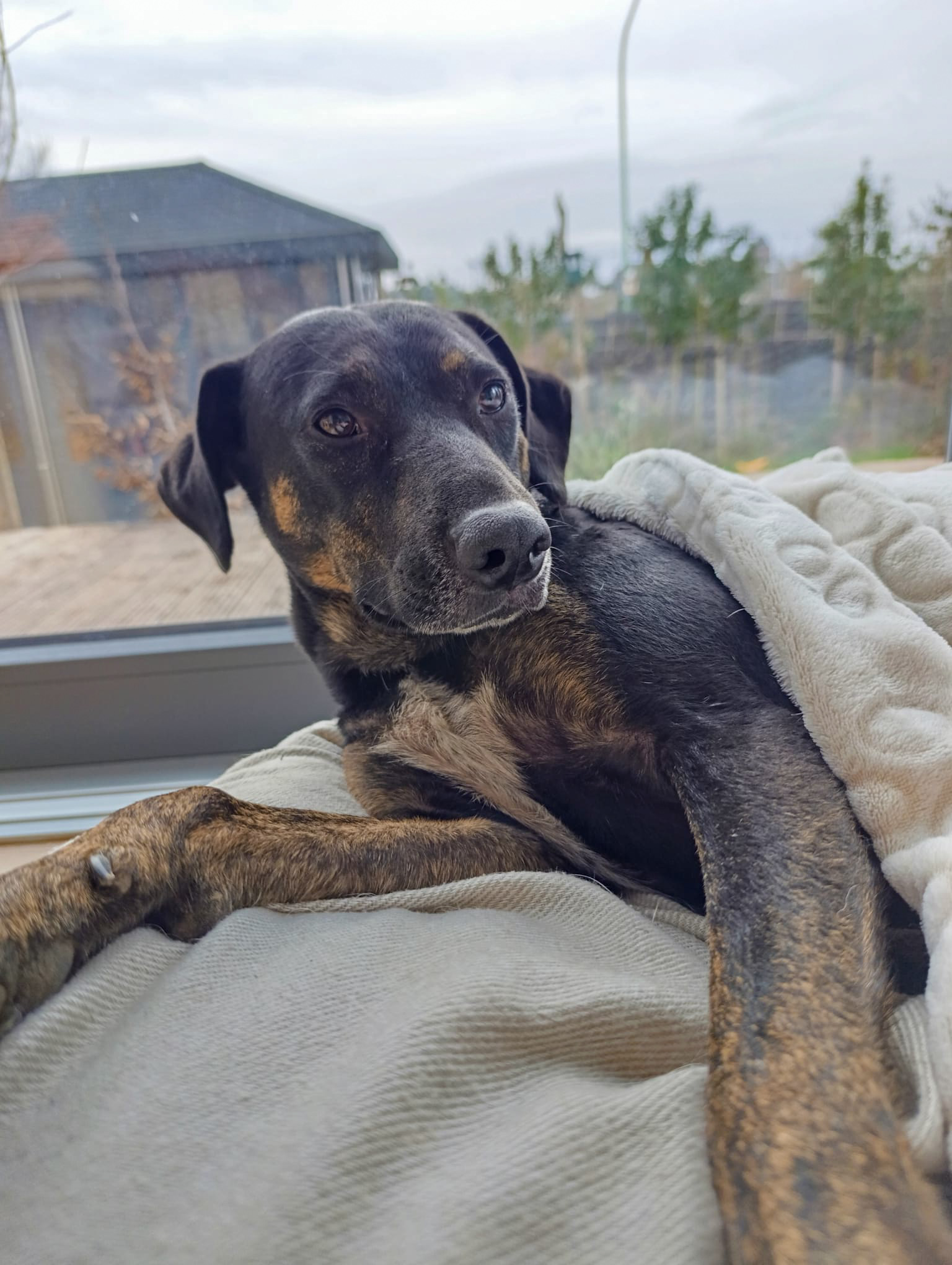Pina kam im Januar 2023 zu unserer Tierschützerin Sandra im Norden Portugals, die sie aus dem örtlichen Tierheim gerettet hatte. Ängstliche, traumatisierte, schwarze oder weniger gefragte Rassen haben selten eine Chance. Und Pina fiel eindeutig in die Kategorie ängstlich.