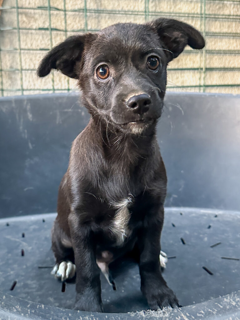 Fidel ist ein kleiner Rüde, der sich voller Neugier und Lebensfreude zeigt – eben ganz altersgemäß unbedarft. Er gehört zu den Welpen, die direkt mitmischen, die Welt erkunden wollen und dabei offen auf Menschen zugehen. Kuschelig, menschenbezogen, neugierig und klein wie er ist trotzdem aber auch vorsichtig – Fidel möchte dazugehören. Trotz seiner zarten Größe bringt er eine große Portion Mut und Herz mit.