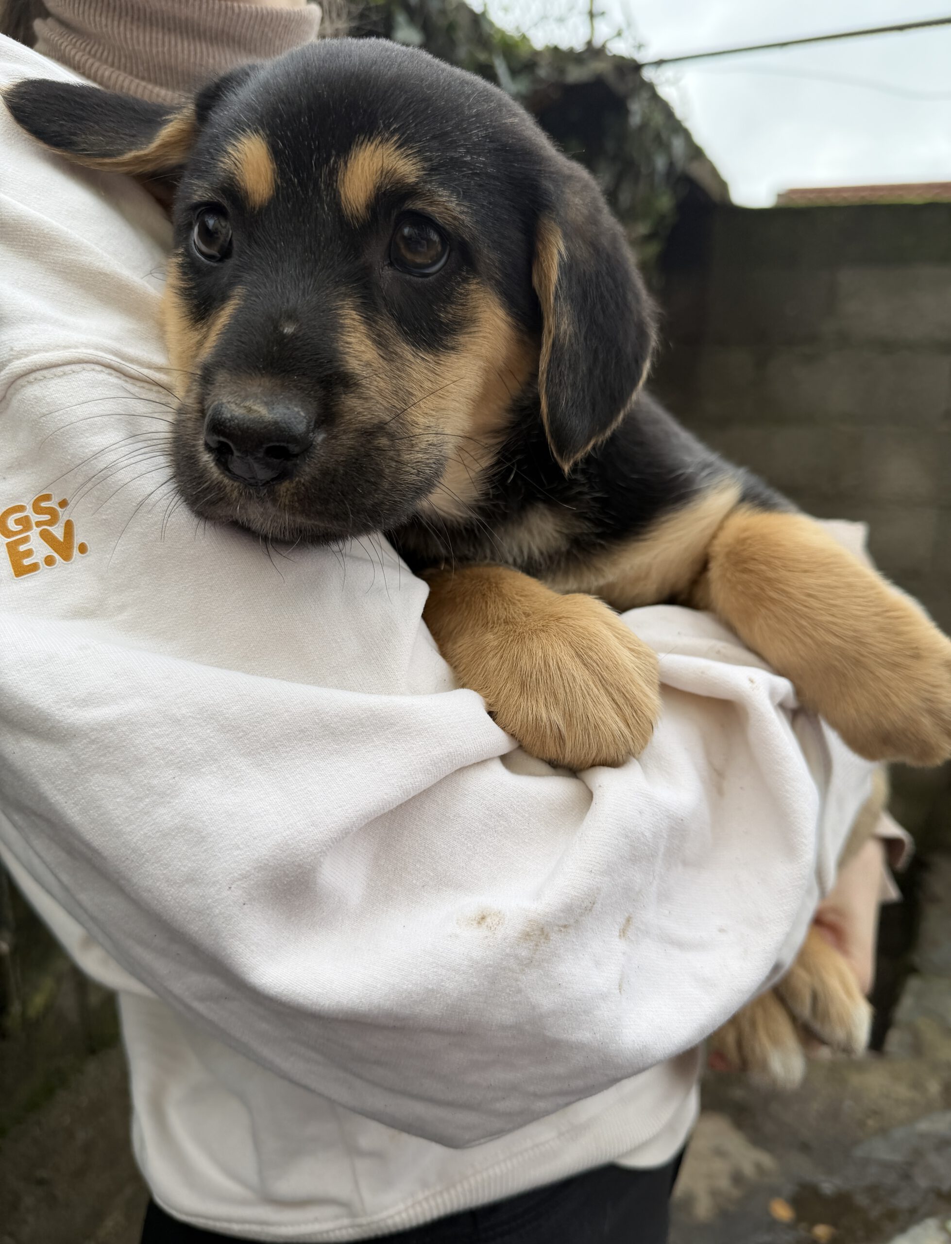 Für Hazel wünschen wir uns Menschen, die verstehen, wo sie herkommt: zwei Monate in Abgeschiedenheit aufgewachsen, nun zwar geschützt in einem Hinterhof, aber weiterhin mit wenig Alltagsreizen. Umso wichtiger ist es, dass sie bald reisen darf – damit sie in einem liebevollen Zuhause früh positive Erfahrungen sammeln und an Sicherheit gewinnen kann.