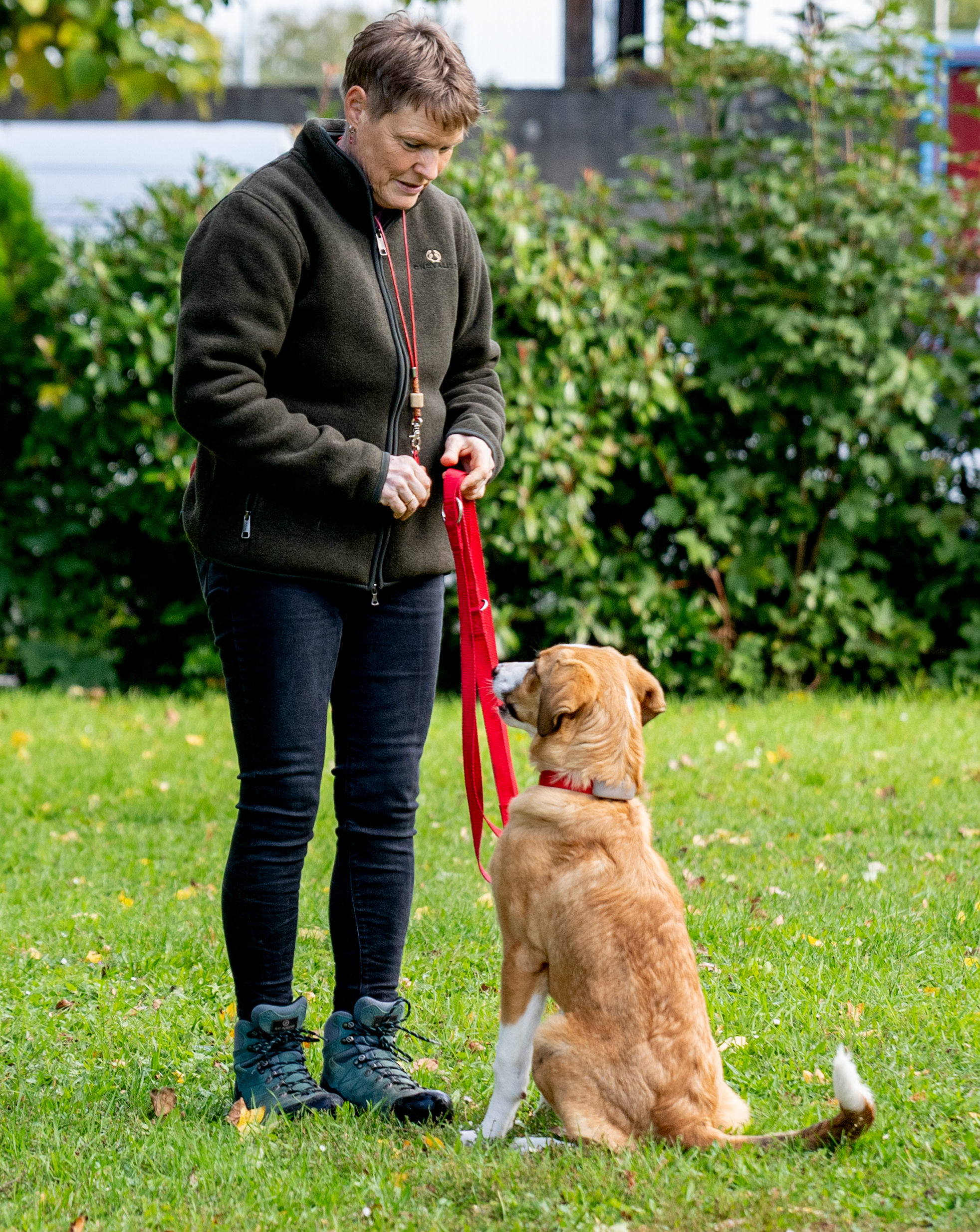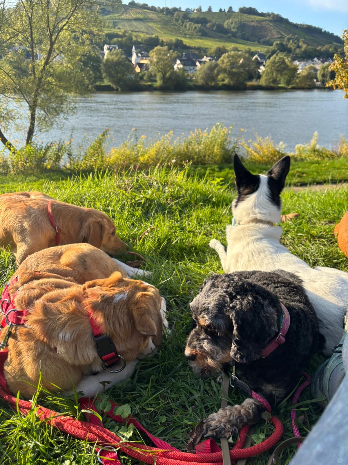 Sie läuft gut an der Leine und meistert neue Situationen souverän – Verkehr, Menschenmengen oder andere Hunde sind für sie kein Problem mehr. Nur in der Dunkelheit zeigt sie sich noch unsicher, lernt aber schnell und lässt sich gut führen. Grundkommandos klappen schon zuverlässig. Maple war sogar schon im Camper unterwegs und hat sich auch auf Reisen als ausgeglichene Begleiterin gezeigt.