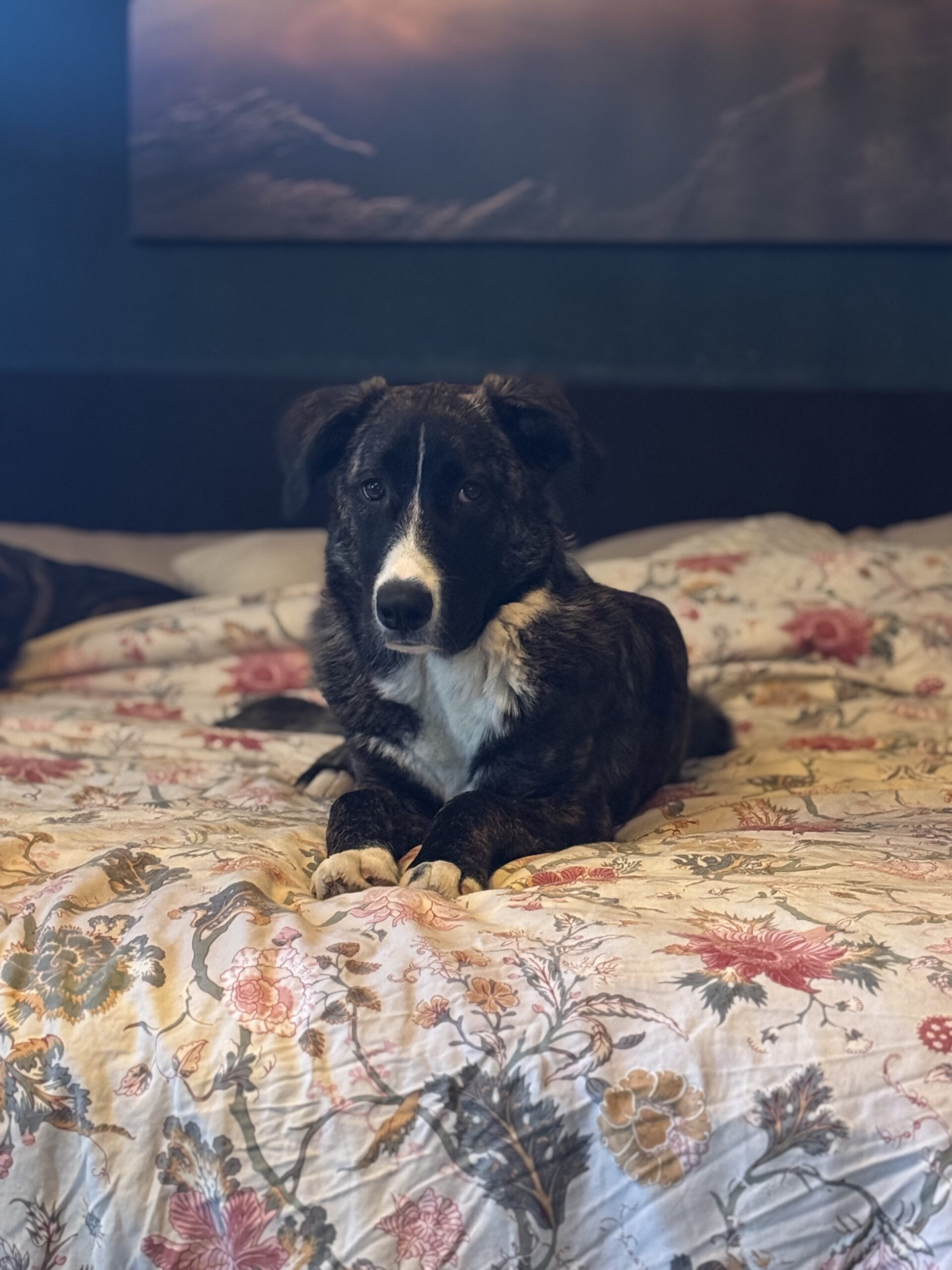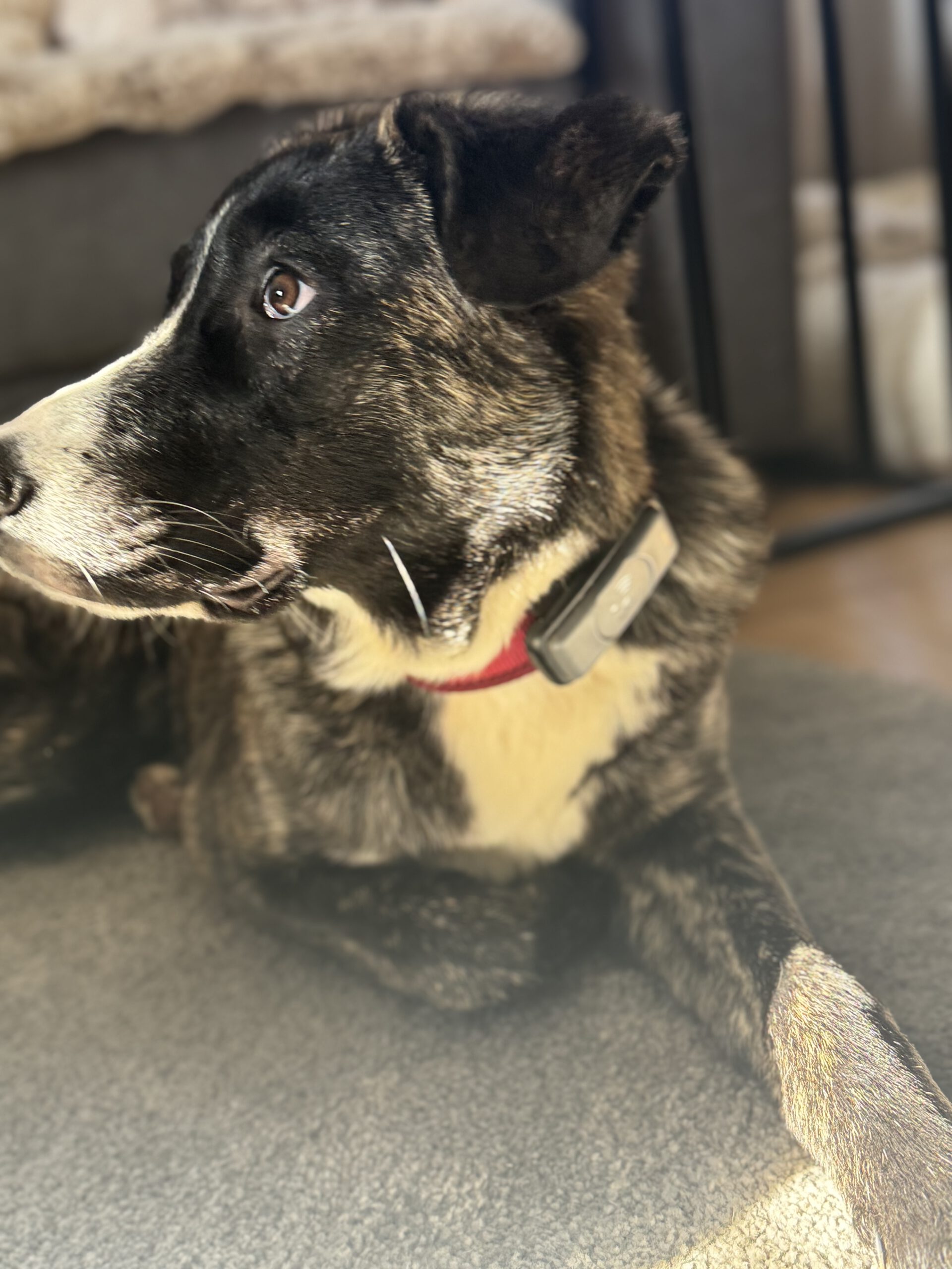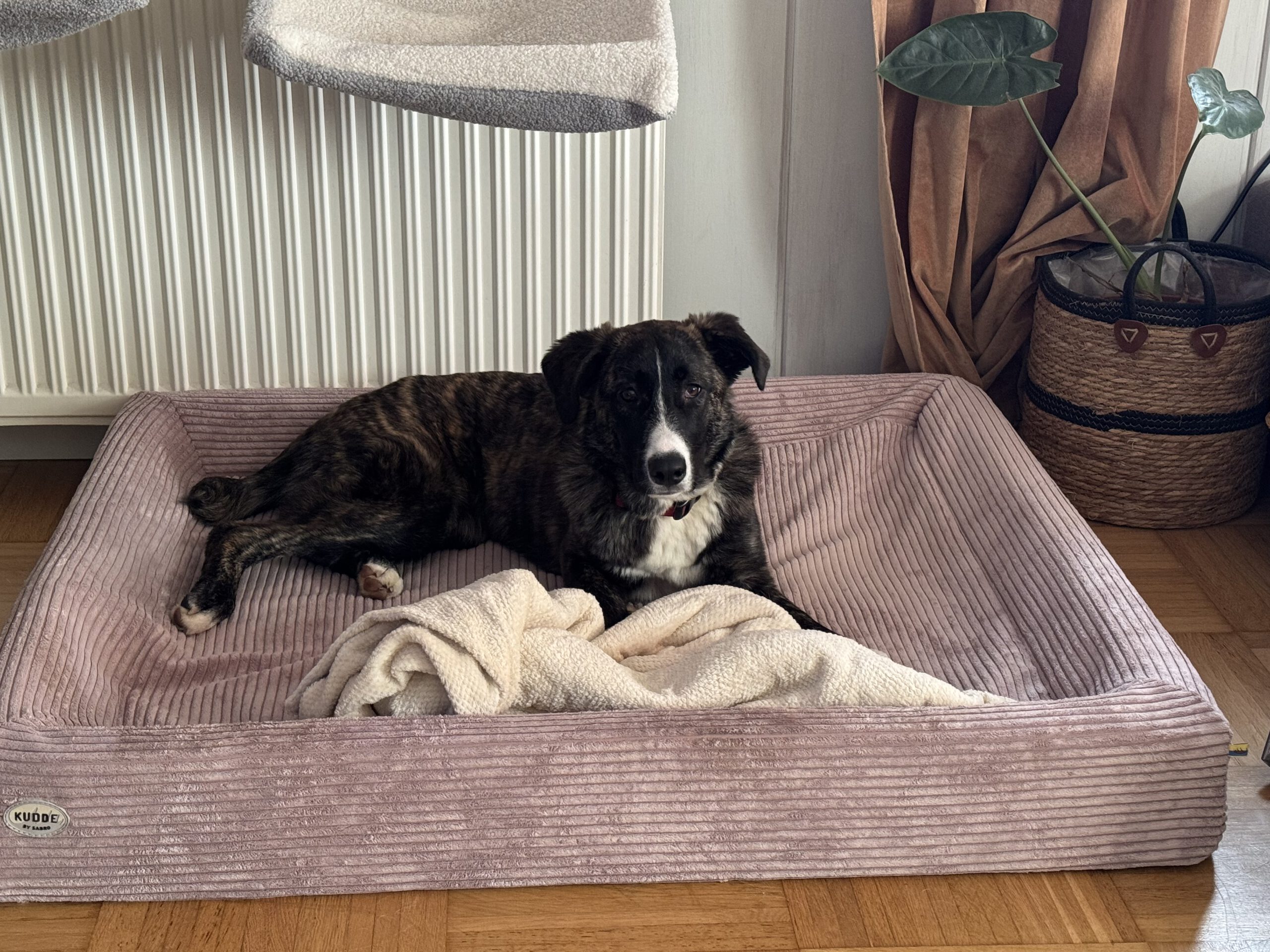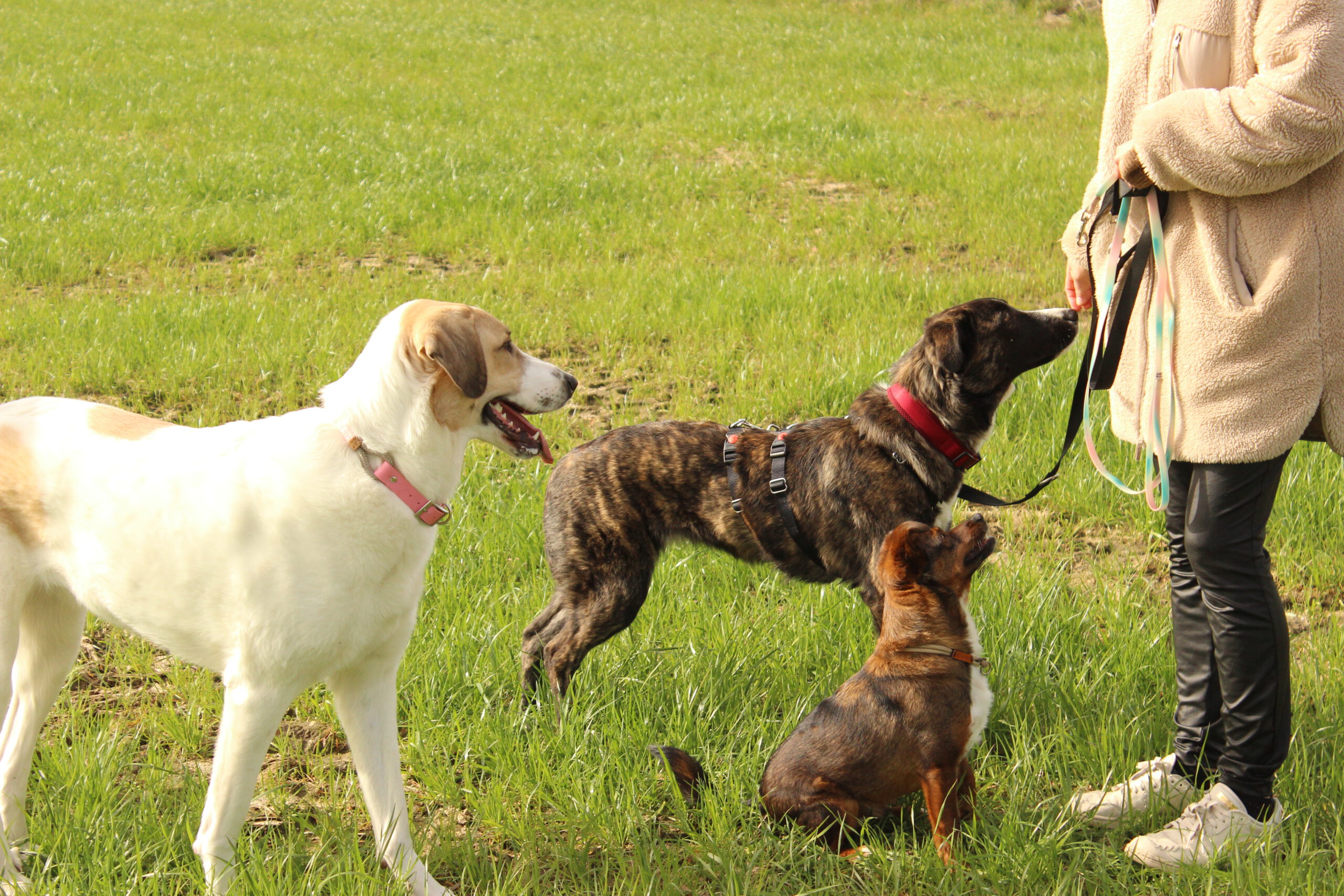 Mit anderen Hunden ist Nula sehr sozial und klar in der Kommunikation. Sie orientiert sich stark an ihnen, weshalb ein souveräner Ersthund für uns Voraussetzung ist. Alleine bleiben in Hundegesellschaft funktioniert gut.