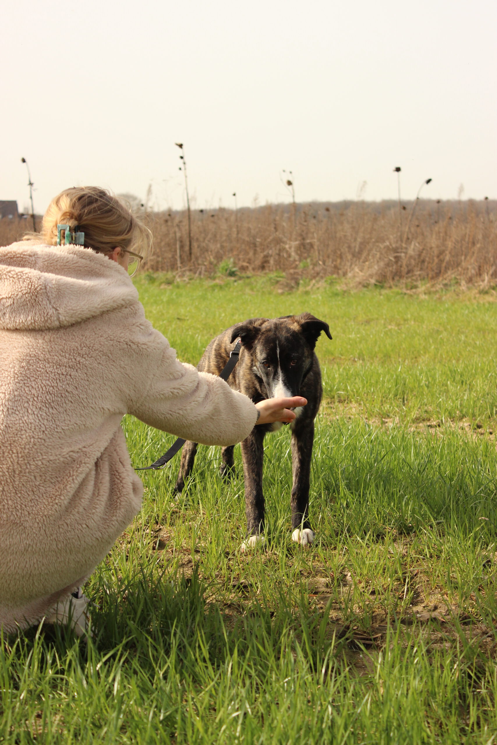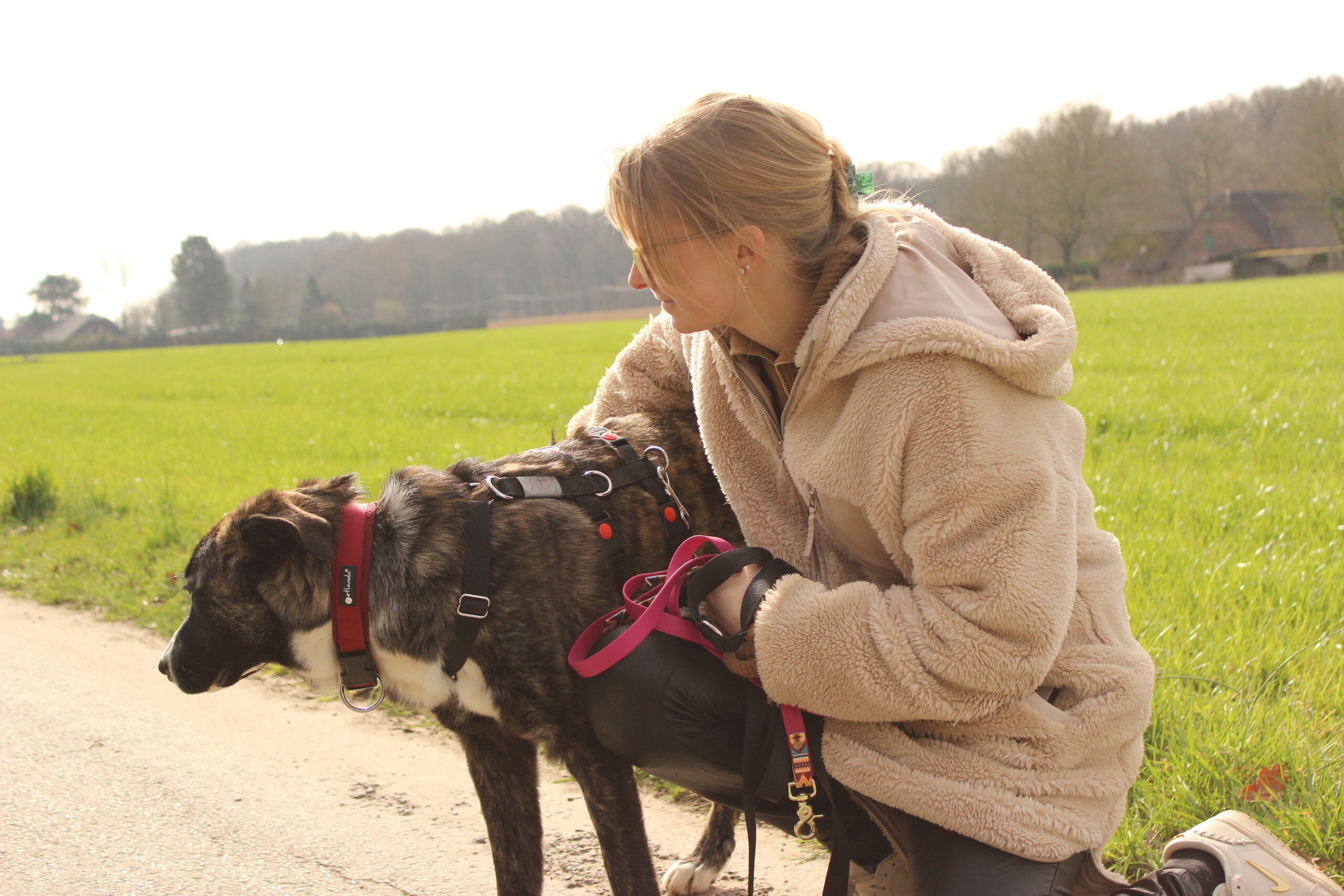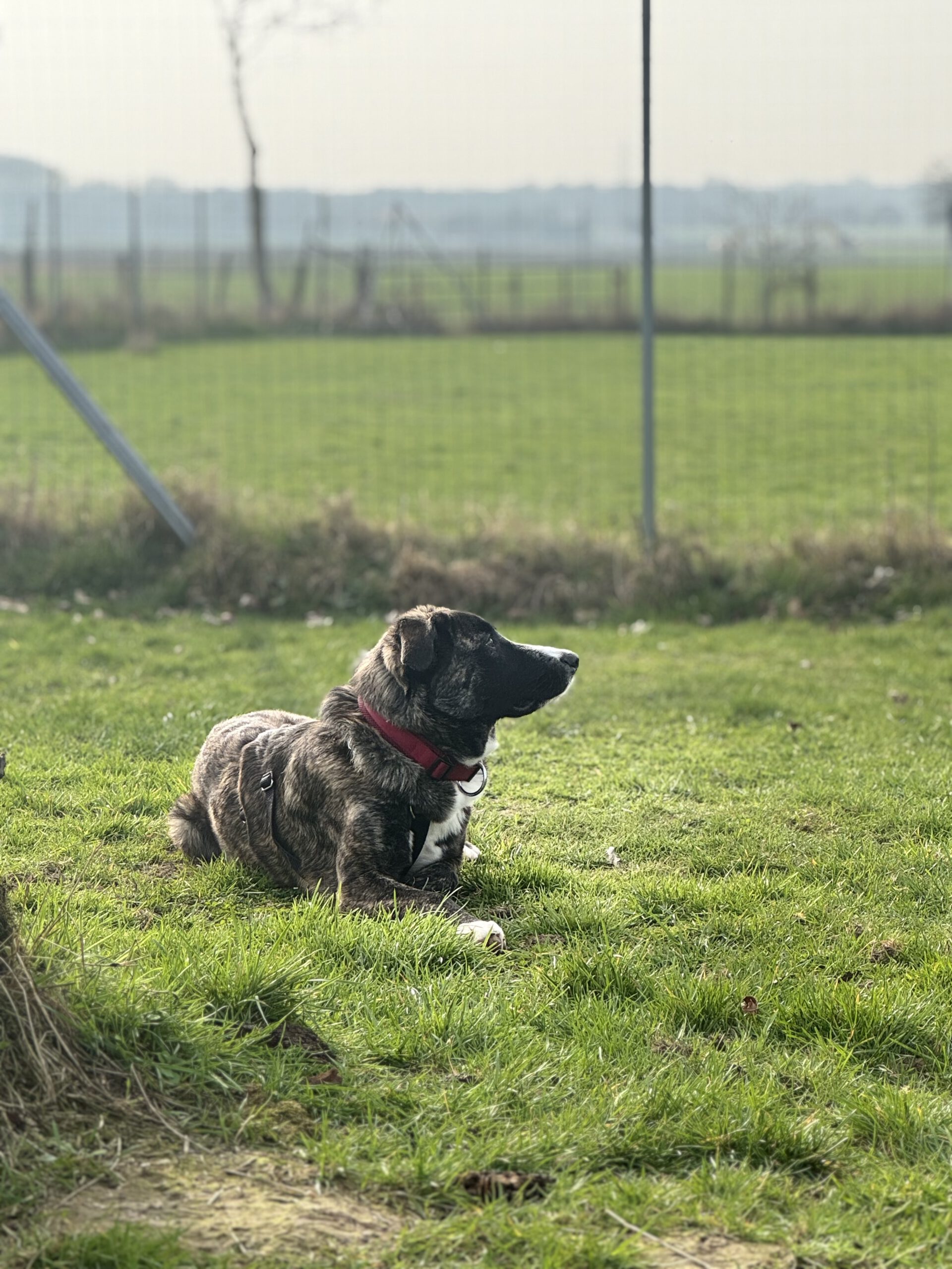 An der Leine läuft Nula bereits ordentlich, muss aber noch lernen, Fluchtimpulse besser zu regulieren. Insgesamt merkt man ihr an, dass ihr in der frühen Prägung der enge Kontakt zum Menschen gefehlt hat – umso wichtiger ist jetzt eine ruhige, klare und vorausschauende Begleitung.
