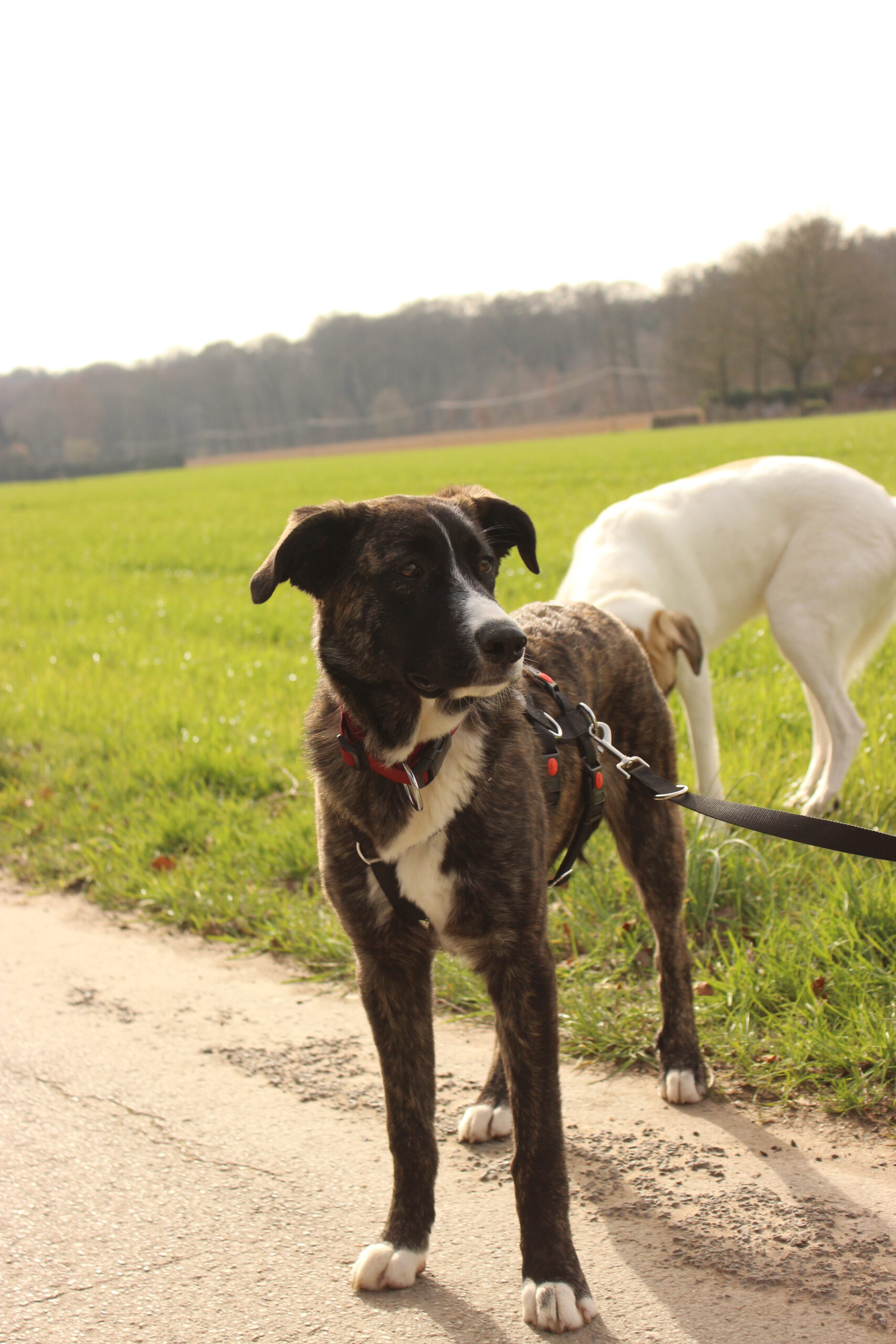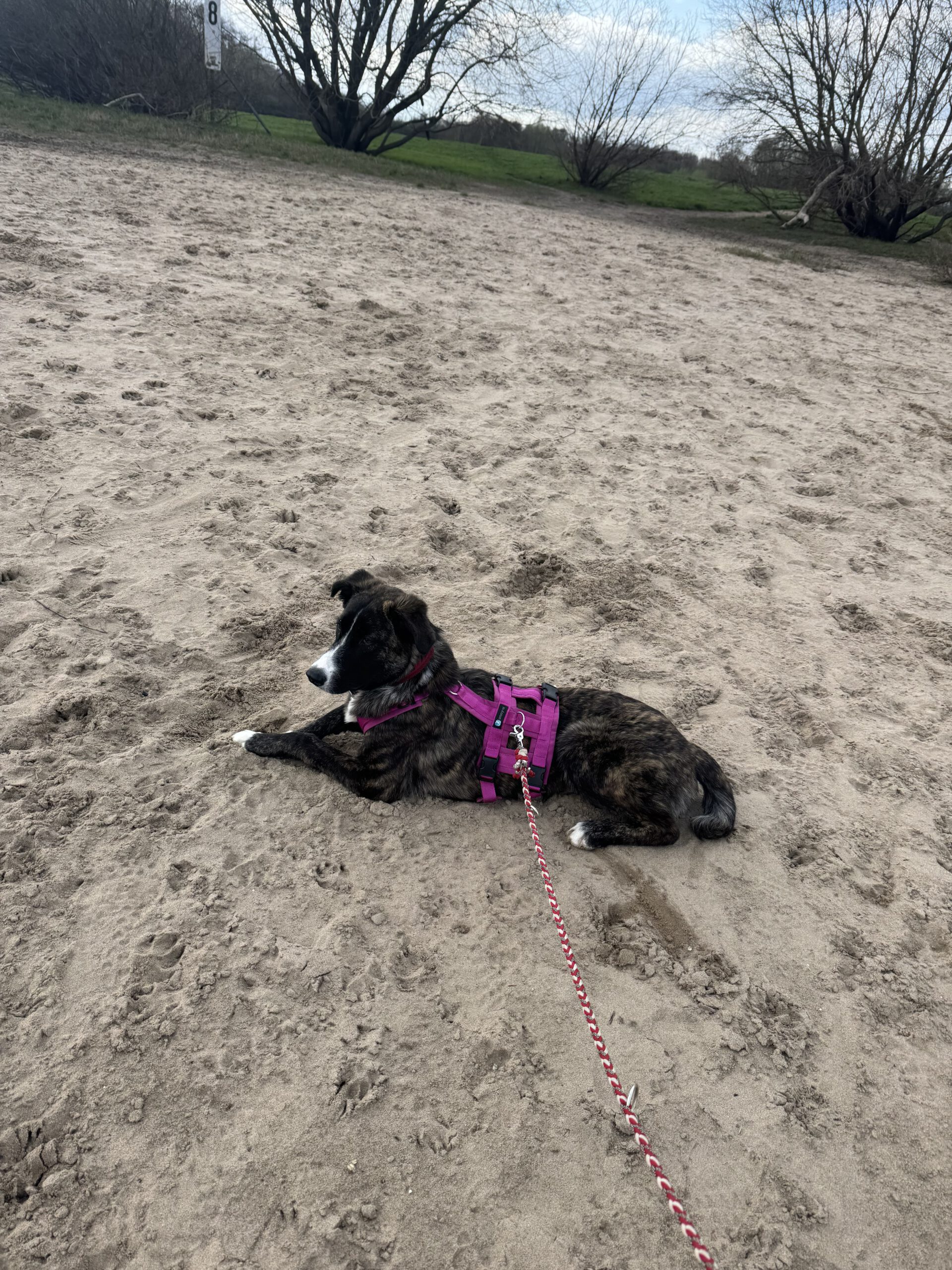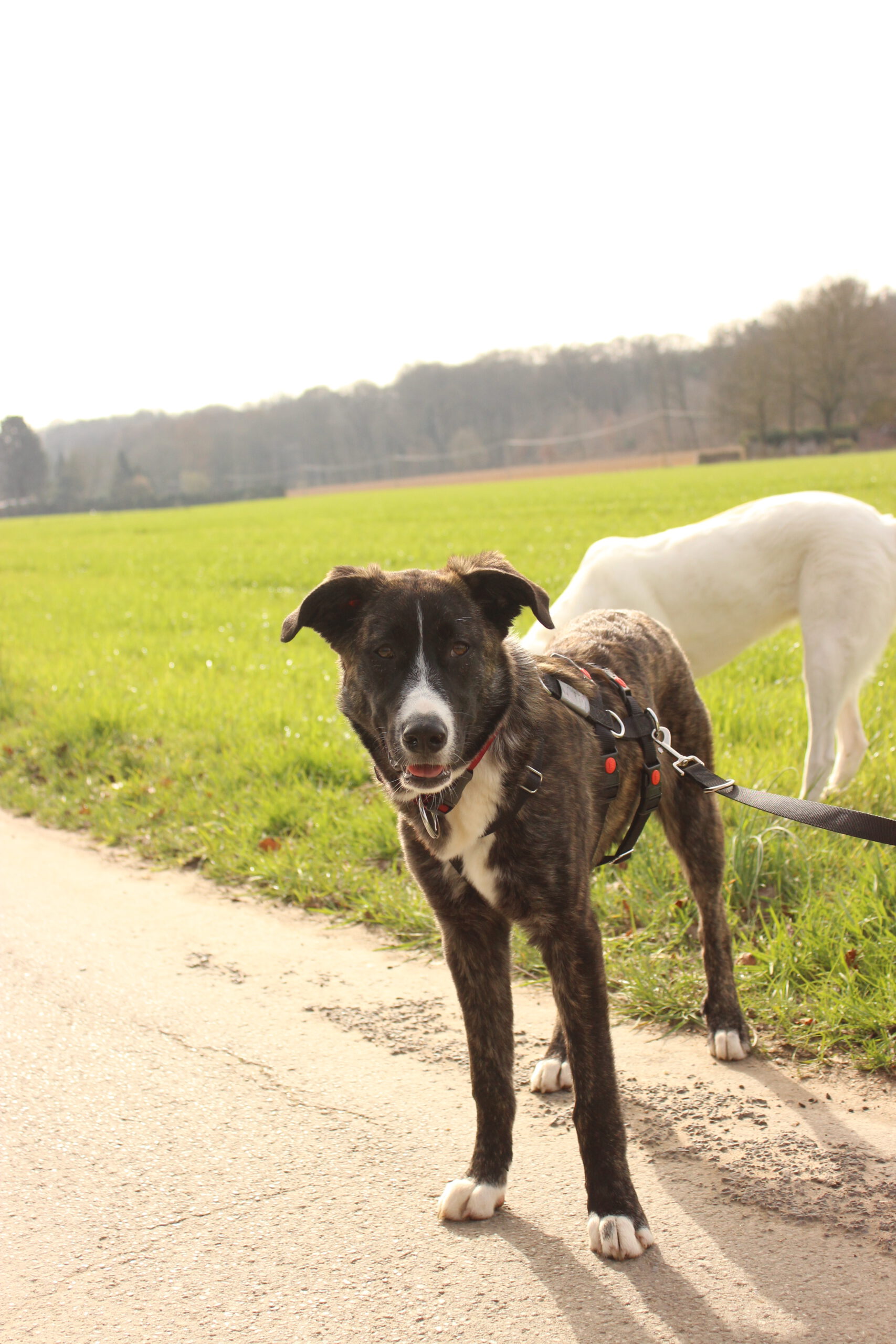An der Leine läuft Nula bereits ordentlich, muss aber noch lernen, Fluchtimpulse besser zu regulieren. Insgesamt merkt man ihr an, dass ihr in der frühen Prägung der enge Kontakt zum Menschen gefehlt hat – umso wichtiger ist jetzt eine ruhige, klare und vorausschauende Begleitung.