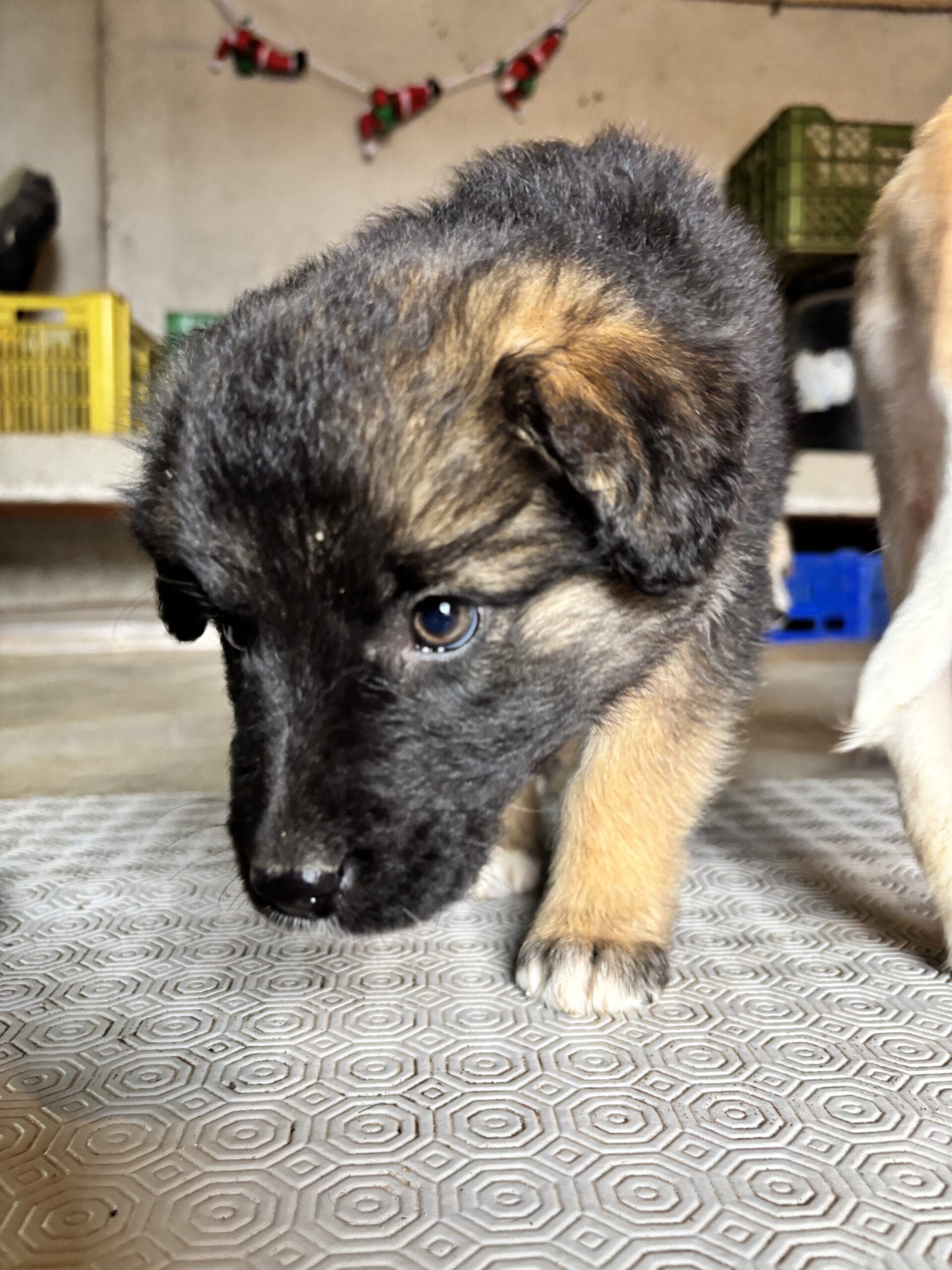 Ihre Mutter ist eine mittelgroße Podenga Mischlingshündin. Das Äußere seiner Geschwister lässt vermuten, dass väterlich Herdenschutzhund mitgemischt hat.